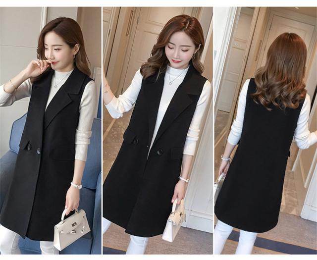ベスト ジレ レディース テーラード 前開き フォーマル チョッキ ロング アウター オフィス 膝上 無地 おしゃれ 体型カバー カジュアル 秋