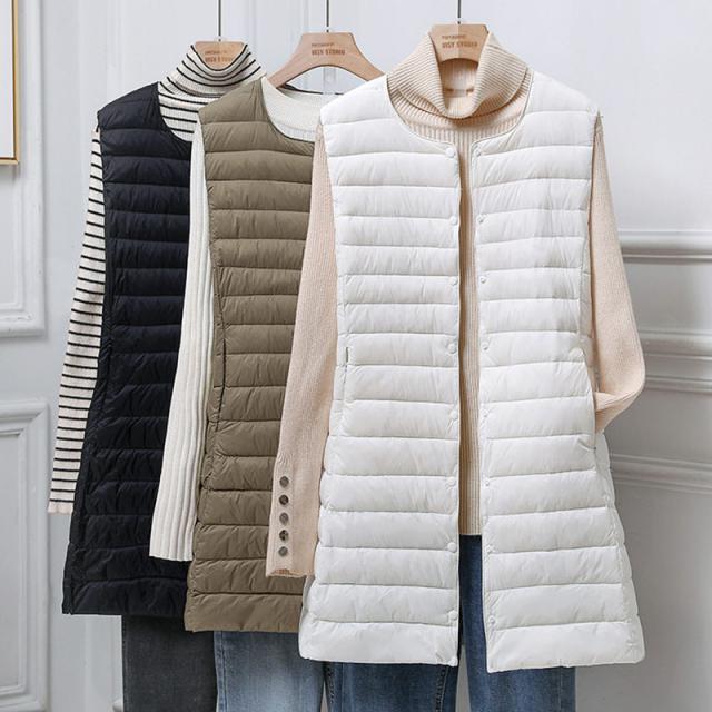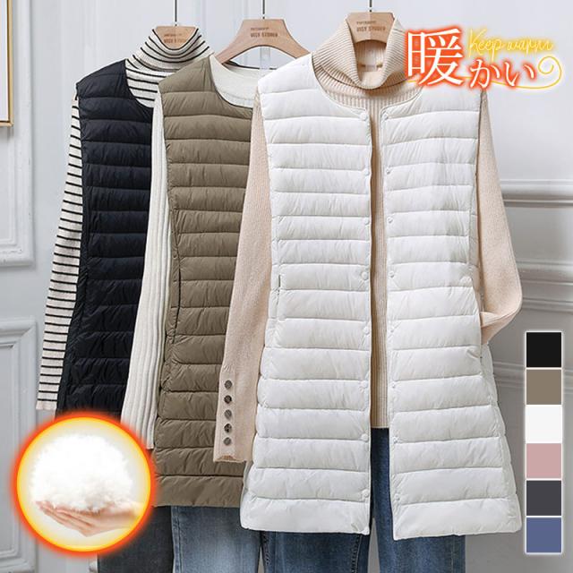 ダウンベスト レディース ジレ インナー ロング丈 羽織り 軽量 着痩せ シンプル きれいめ カジュアル 保温 暖かい 防寒 秋冬