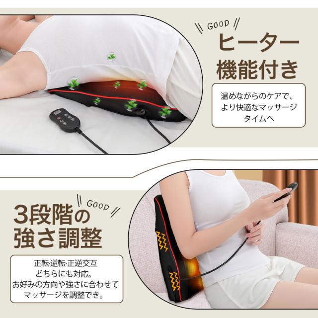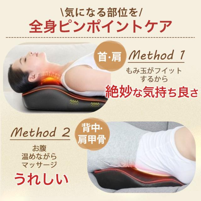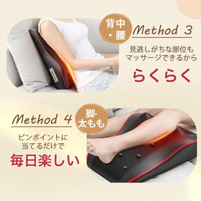 マッサージ部位:頸椎/肩/首/腰/背中/太もも/足/腹/ふくらはぎ