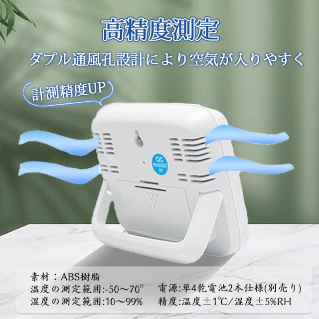 【温度・湿度測定範囲】 温度(-50 °C ~ 70 °C)、湿度(10% ~ 99% RH)、表示単位:温度(0.1℃)、湿度(1%RH)