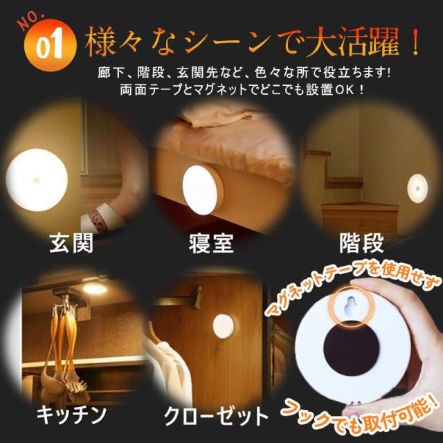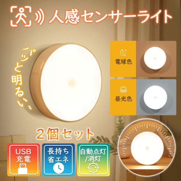 国内当日発送 人感センサーライト LED 2個セット センサーライト 室内 センサー照明 明るい USB 自動 充電式 玄関 足元 明るい 寝室 おしゃれ 敬老の日
