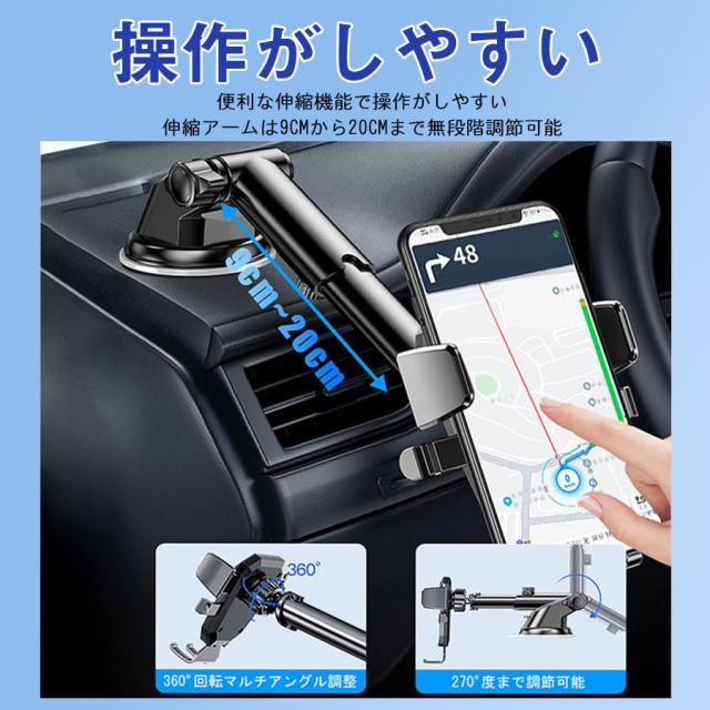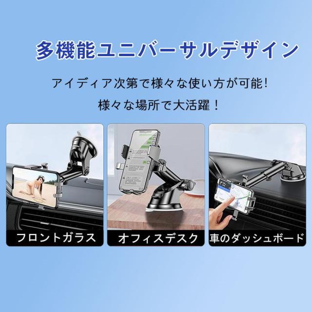 スマホホルダー 車 車載ホルダー スマホスタンド スマホ スマートフォン 車載スマホホルダー 吸盤式 伸縮アーム 片手操作 360度回転 全機種対応