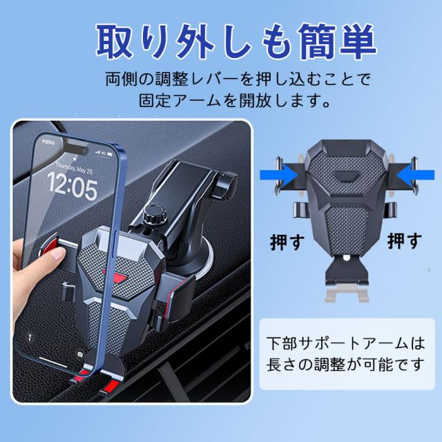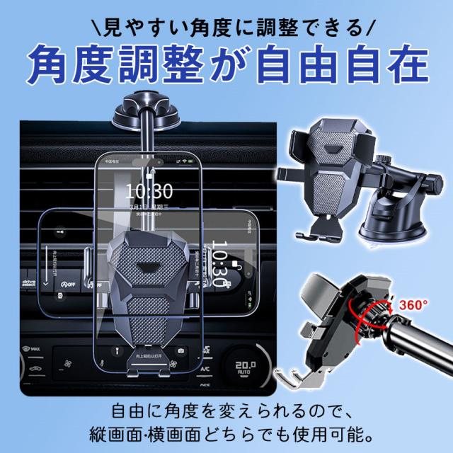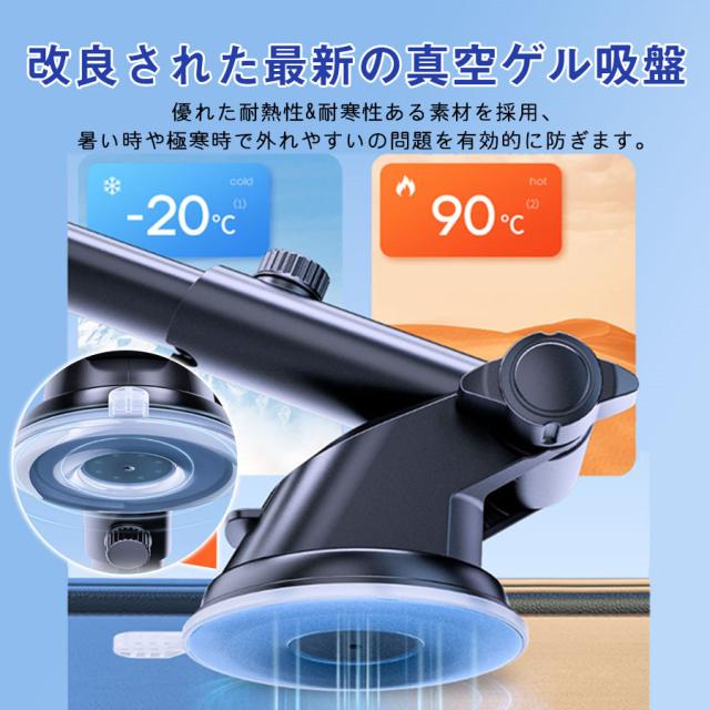 ゲル素材を採用した超強力真空吸盤により、ダッシュボードやガラス面などにしっかりと簡単に取り付けることができます。
