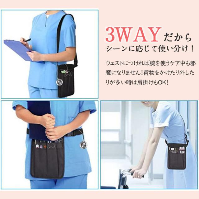 国内即日発送 ナースポーチ ウエストポーチ ショルダー 小さめ 多機能 作業用 ポケット 介護ポーチ 3way エプロンバック メンズ レディース 看護 介護