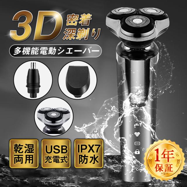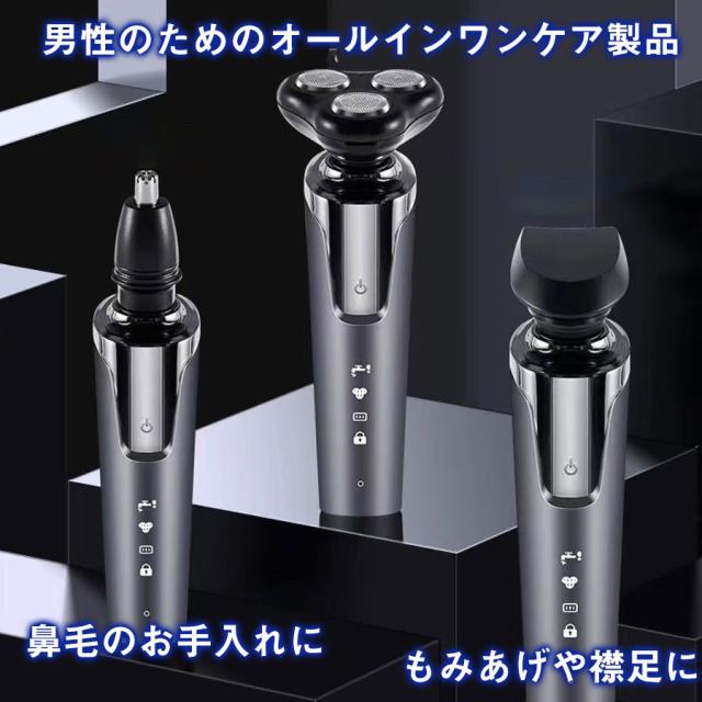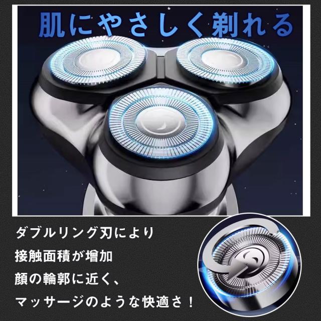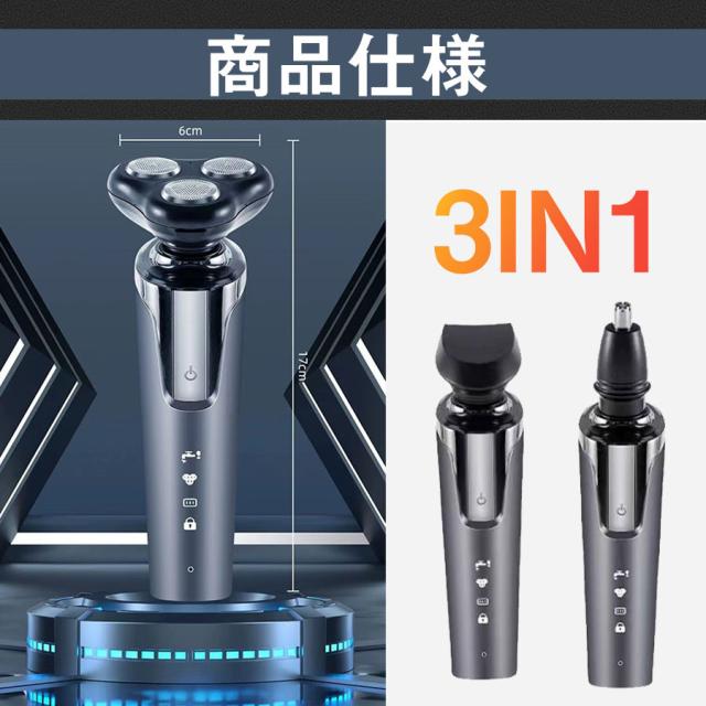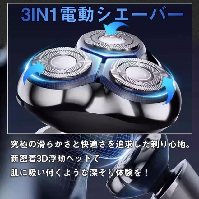 髭剃り 電動シェーバー シェーバー ひげそり 3in1 水洗い IPX7防水 USB充電 軽量 出張 旅行 回転式 メンズ プレゼント ギフト