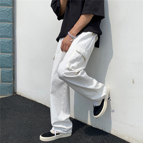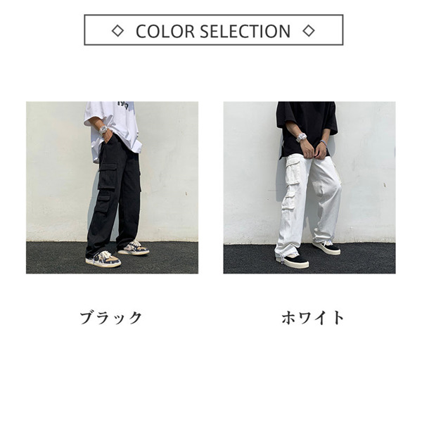 カーゴパンツ メンズ ボトムス ズボン ミリタリー ロング ゆったり 作業服 カジュアル おしゃれ ワークパンツ アウトドア ワイト ブラック