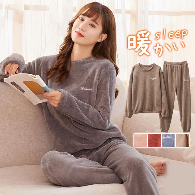 パジャマ 上下セット ルームウェア レディース もこもこ セットアップ 裏起毛 裏ボア 着る毛布 寝巻き 秋冬 暖かい 厚手 部屋着 パジャマセット