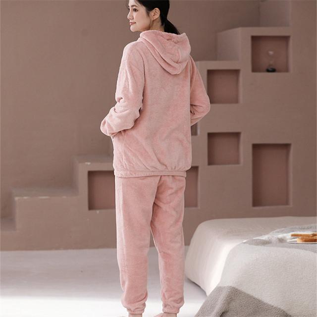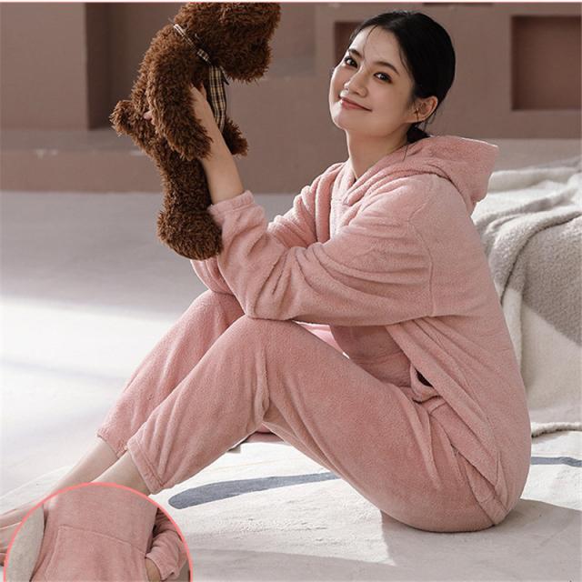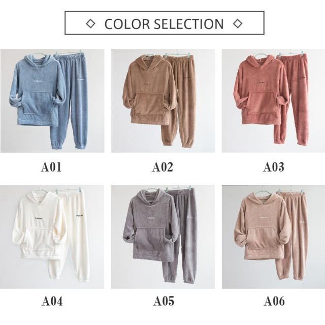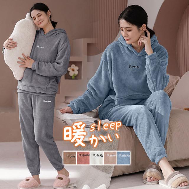 パジャマ 上下セット ルームウェア レディース フード付き セットアップ 裏起毛 裏ボア 寝巻き 秋冬 暖かい 厚手 部屋着 パジャマセット