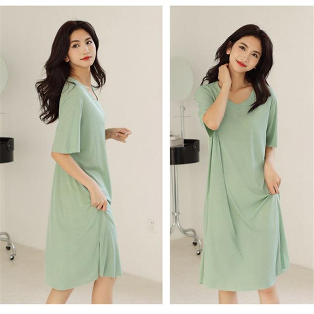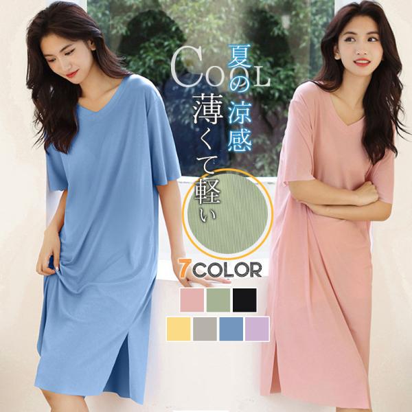 2点ご購入で200円OFF ルームウェア パジャマ ワンピース レディース 半袖 春夏 ひんやり 接触冷感 可愛い 寝巻き 部屋着 涼しい 婦人服 柔らかい