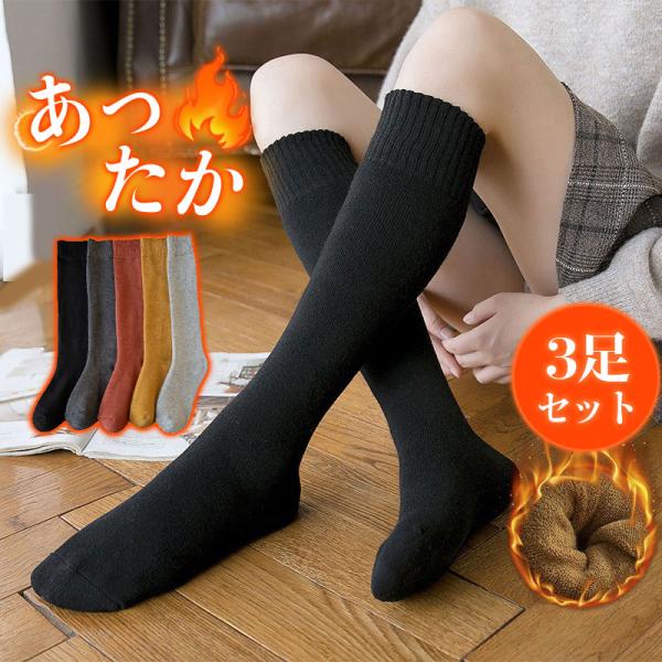 靴下 ソックス レディース 暖かい 3足セット クルーソックス ふくらはぎ 秋冬 厚手 抗菌防臭 おしゃれ かわいい 防寒 ぽかぽか 弾性