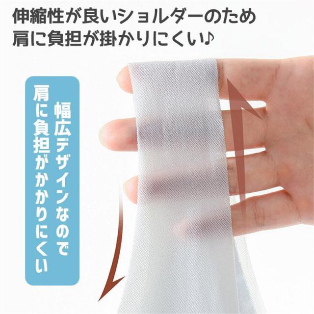 幅広ストラップは滑りにくく、胸元をしっかりサポートします。