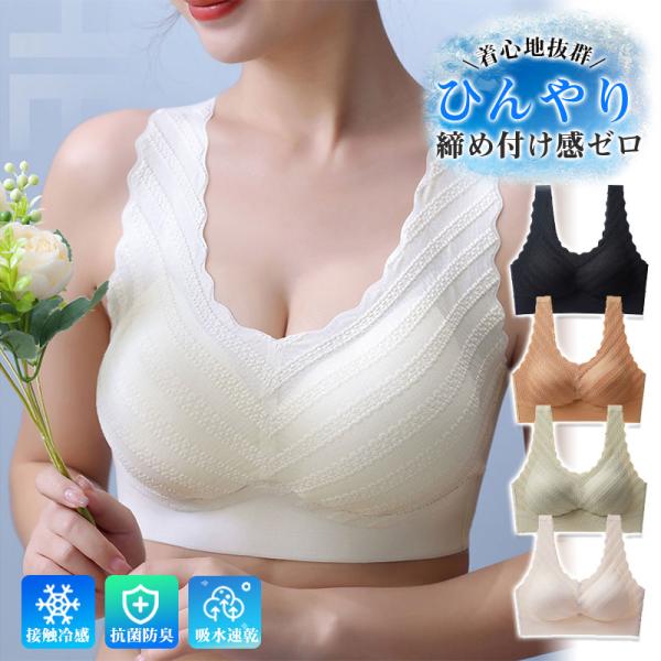 ブラジャー 接触冷感 涼しい ナイトブラ ノンワイヤーブラ 夏 レディース ノンワイヤー 超盛りブラ 吸水速乾 通気 スポーツ 肌着 かわいい