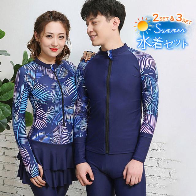 水着セット レディース メンズ ラッシュガード 日焼け防止 カップル水着 ペアルック サーフィン スポーツ ワンピース フィットネス セパレート