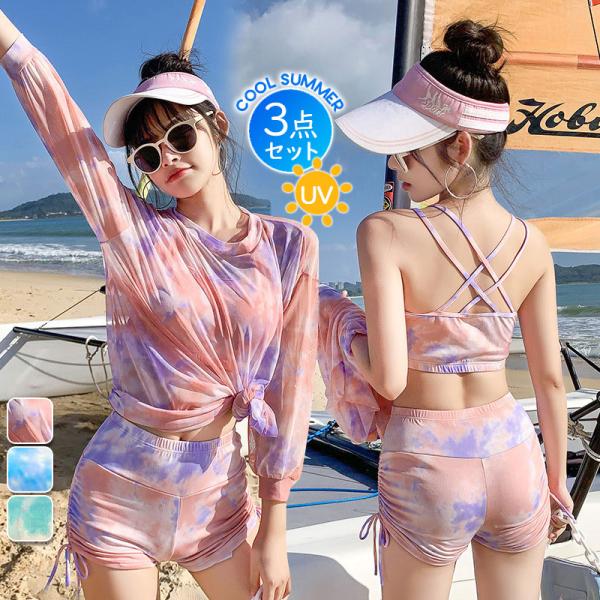最安挑戦!水着 レディース 3点セット 体型カバー 日焼け防止 UVカット おしゃれ セパレート ママ水着 セクシー スイムウェア 可愛い 海 ビーチ プール