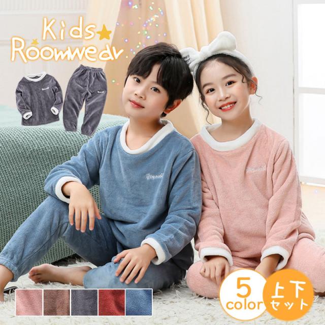 パジャマ ルームウェア キッズ 子ども 上下セット 部屋着 寝巻き 子供 厚手 防寒 ふわふわ もこもこ セットアップ あったか 男の子 女の子