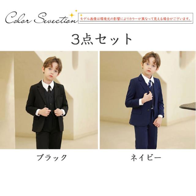 卒業式 スーツ 3点セット 入学式 卒園式 セットアップ フォーマル キッズ 男の子 子供服 ジャケット ブラック ボーイズスーツ 発表会 冠婚葬祭