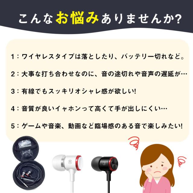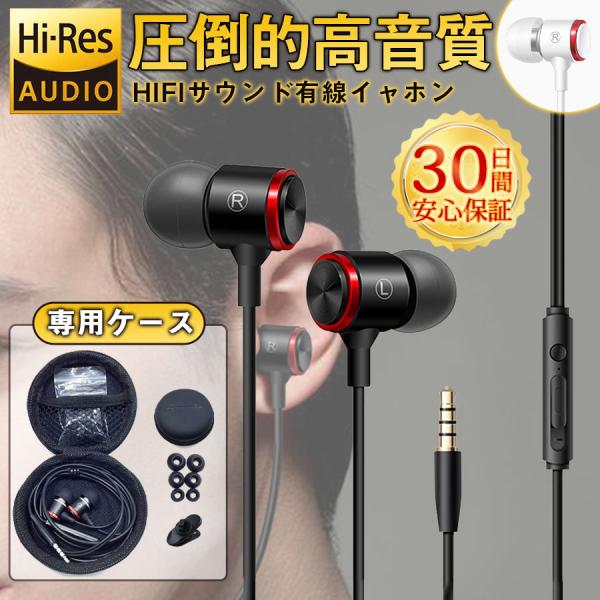イヤホン 有線 ケース付き イヤフォン マイク付き 有線イヤホン 通話可能 リモコン付き カナル型 高音質 音量調整 テレワーク 音量調節 3.5mm
