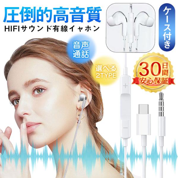 イヤホン 有線 ケース付き イヤフォン マイク付き 有線イヤホン 通話可能 リモコン付き カナル型 高音質 音量調整 テレワーク 音量調節 絡まない