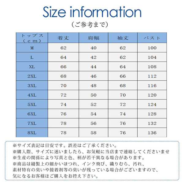 サイズ:/M/L/XL/2XL/3XL/4XL/5XL/6XL/7XL/8XL