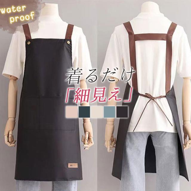 エプロン おしゃれ 保育士 ワンピース H型 防水 メンズ レディース シンプル 業務用 ポケット付き かわいい ワークエプロン カフェ 飲食