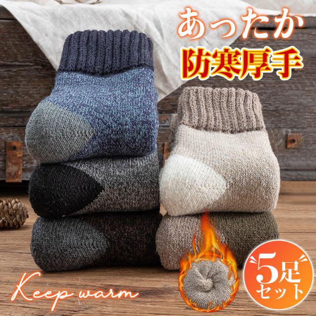【2点ご購入で200円OFF!】即納 5足セット 靴下 メンズ あったか ソックス 冷え症 暖かい 厚手 秋冬用 おしゃれ 綿 厚地 保温 防寒 冷え対策 アウトドア