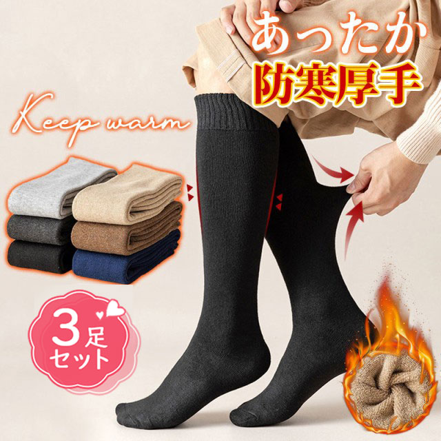 \即納/【3足セット】靴下 ソックス 暖かい メンズ くつした ハイソックス ルームソックス 厚手 裏起毛 防寒対策 あったか ぽかぽか 送料無料
