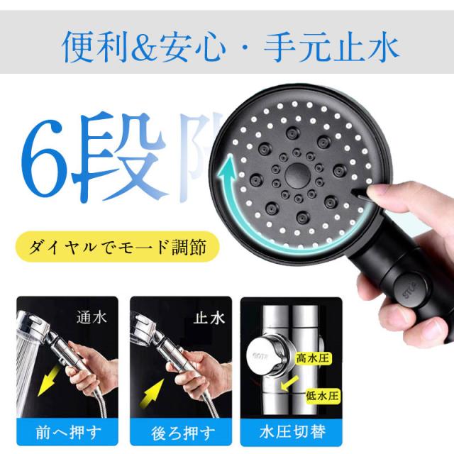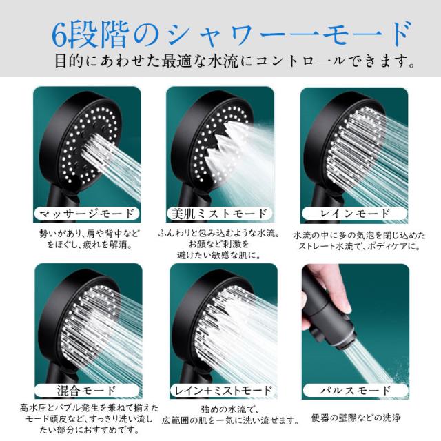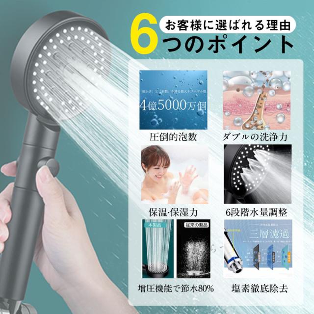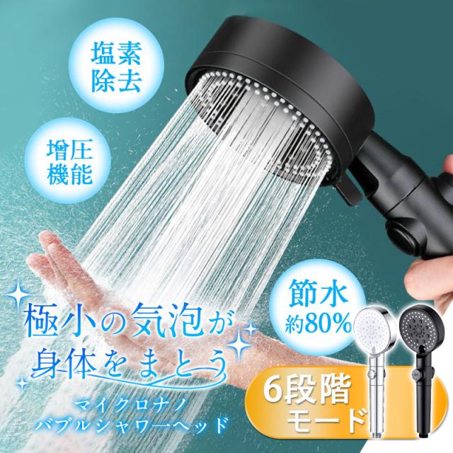 シャワーヘッド 増圧 節水 6段階モード ナノバブル アダプター付 塩素除去 浄水 マイクロバブル 頭皮ケア 高水圧 ワンタッチ止水 美肌 保湿 超微細ミスト ギフト