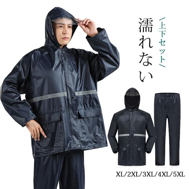 レインウェア 上下セット レインコート ポケット付き 通勤 通学 自転車 防水 撥水 耐水 梅雨対策 メンズ レディース 男女兼用 雨合羽 カッパ