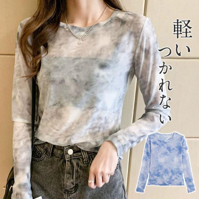 カットソー レディース シースルー tシャツ トップス ゆるTシャツ 長袖 インナー 重ね着 レイヤード 薄手 透け感 かわいい カジュアル