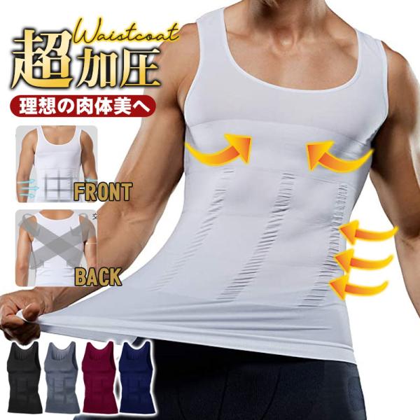 【2点ご購入で200円OFF!】加圧タンクトップ メンズ 加圧シャツ 加圧インナー トップス 下着 動きやすい ノースリーブ 補正下着 引き締め 着圧 お腹 姿勢