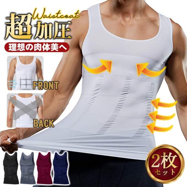 2枚セット 加圧タンクトップ メンズ 加圧シャツ 加圧インナー トップス 動きやすい ノースリーブ 補正下着 引き締め 着圧 お腹 姿勢