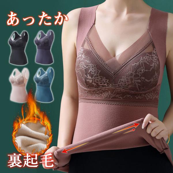 裏起毛 タンクトップ レディース 裏ボア ノンワイヤー カップ付 暖かい 保温 キャミソール インナー 冬 ベスト 部屋着 吸湿発熱 防寒