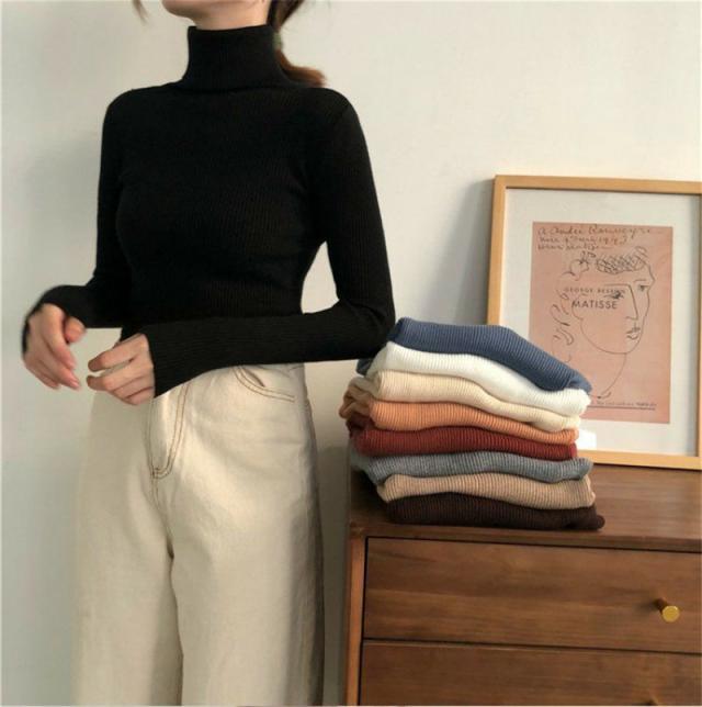 セーター ニット レディース ハイネック トップス インナー タートルネック 長袖 柔らかい 防寒 シンプル ストレッチ 無地 通学 通勤 春秋
