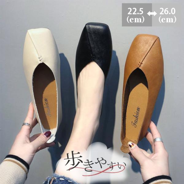 パンプス レディース シューズ スクエアトゥ ローヒール バレエシューズ ぺたんこ フラット 歩きやすい オフィス 可愛い 軽量 疲れない 通勤