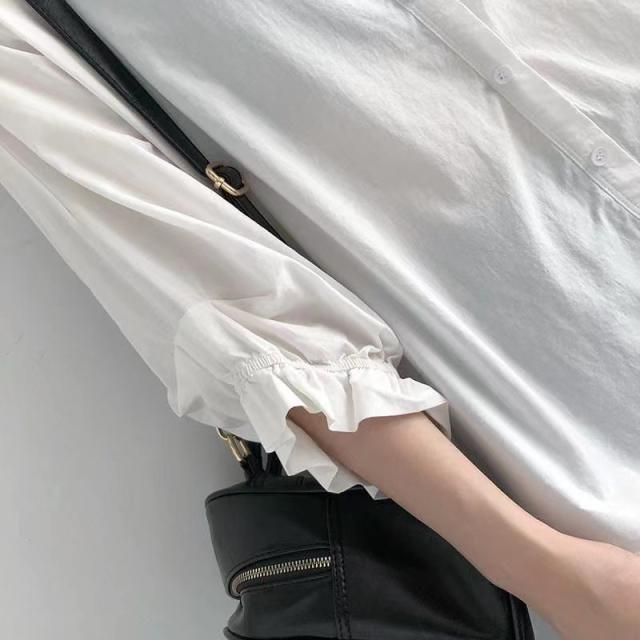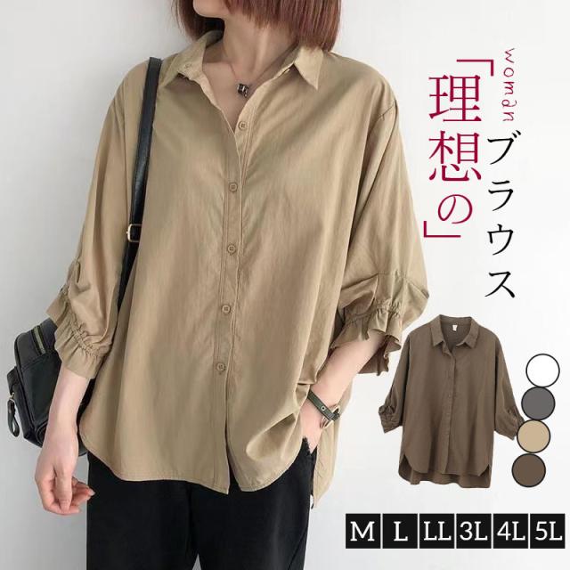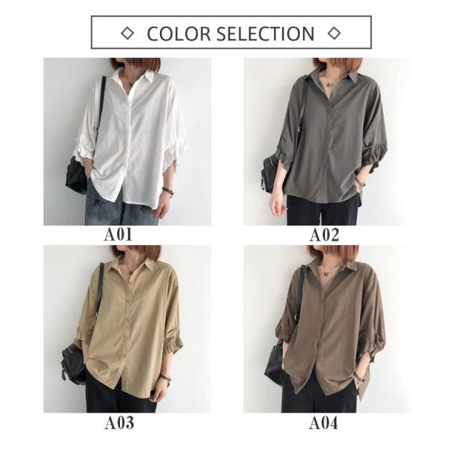ブラウス レディース Tシャツ 七分袖 半袖 シャツ トップス ボリューム袖 体型カバー ゆったり シンプル オフィス 通勤 可愛い お洒落 着痩せ