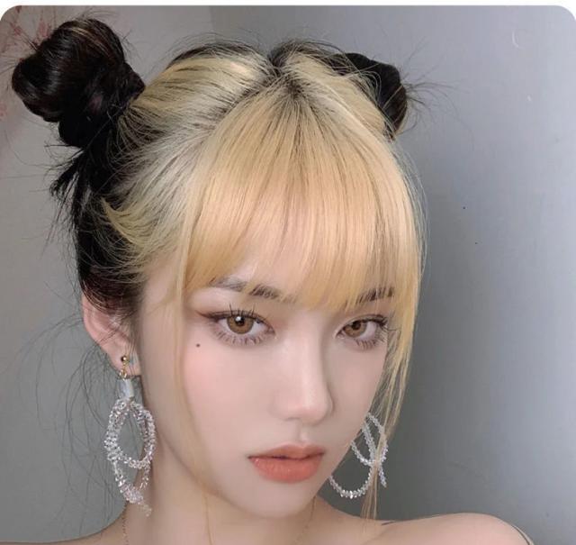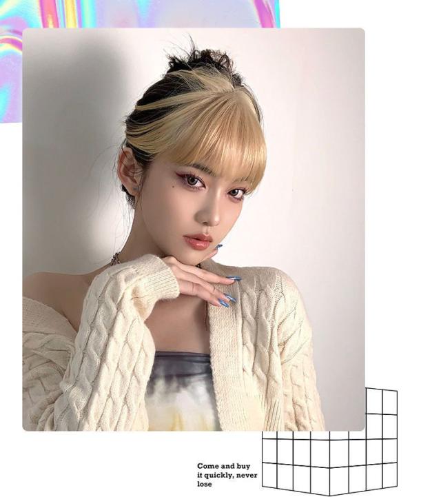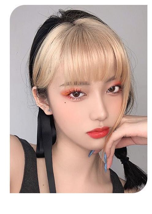 送料無料 前髪ウィッグ ヘアピース 金髪 黒髪 ワンタッチ エクステ ツートンカラー メッシュ トレンドヘア ヘアアレンジ 部分ウィッグ つけ毛