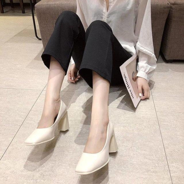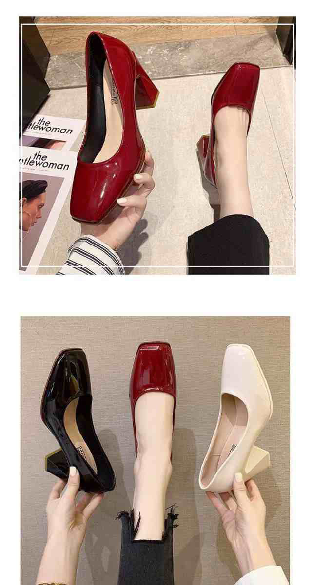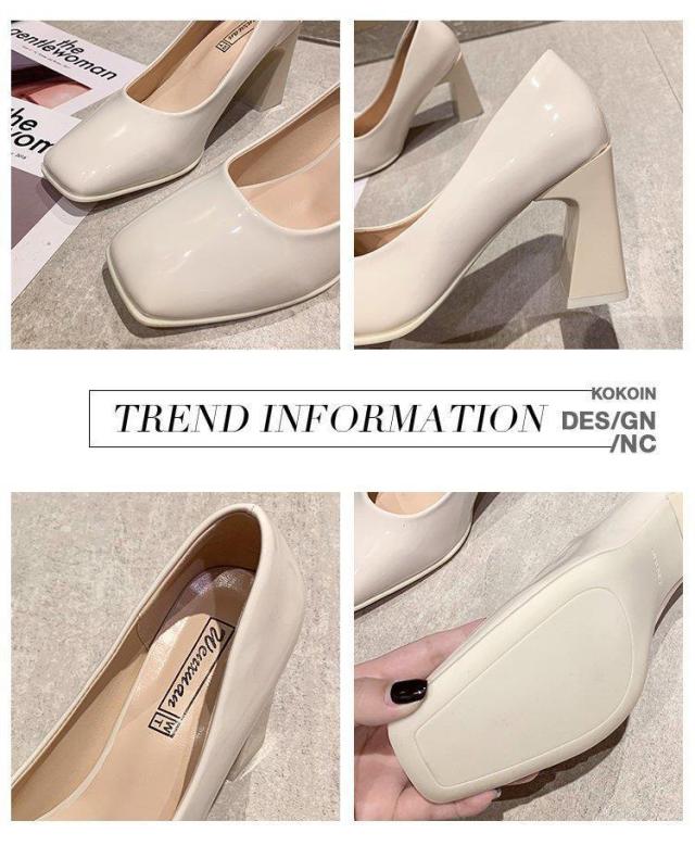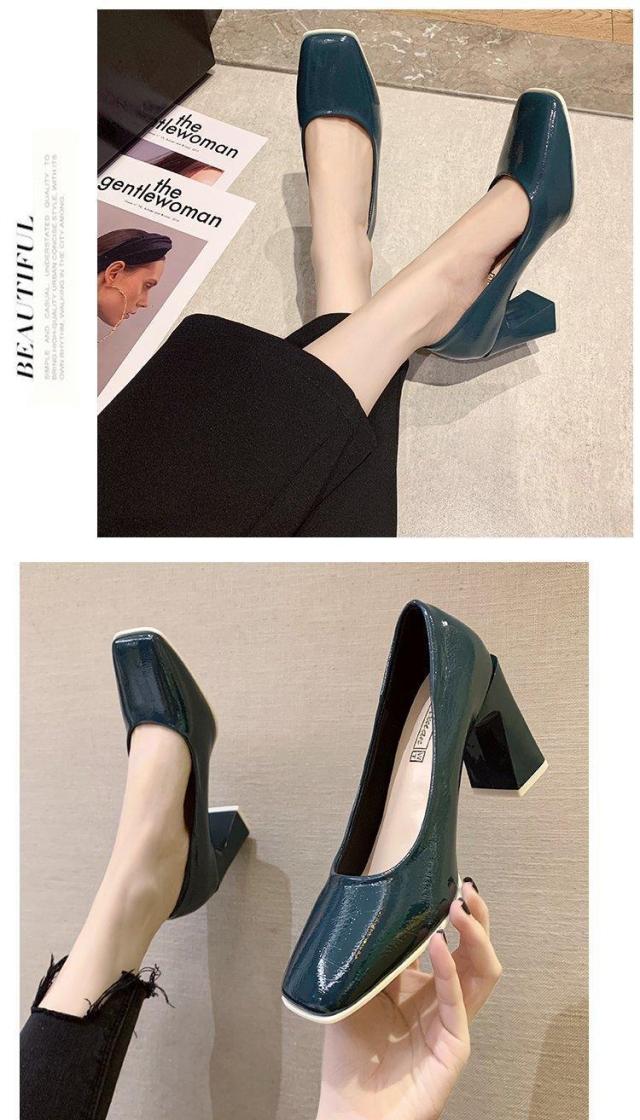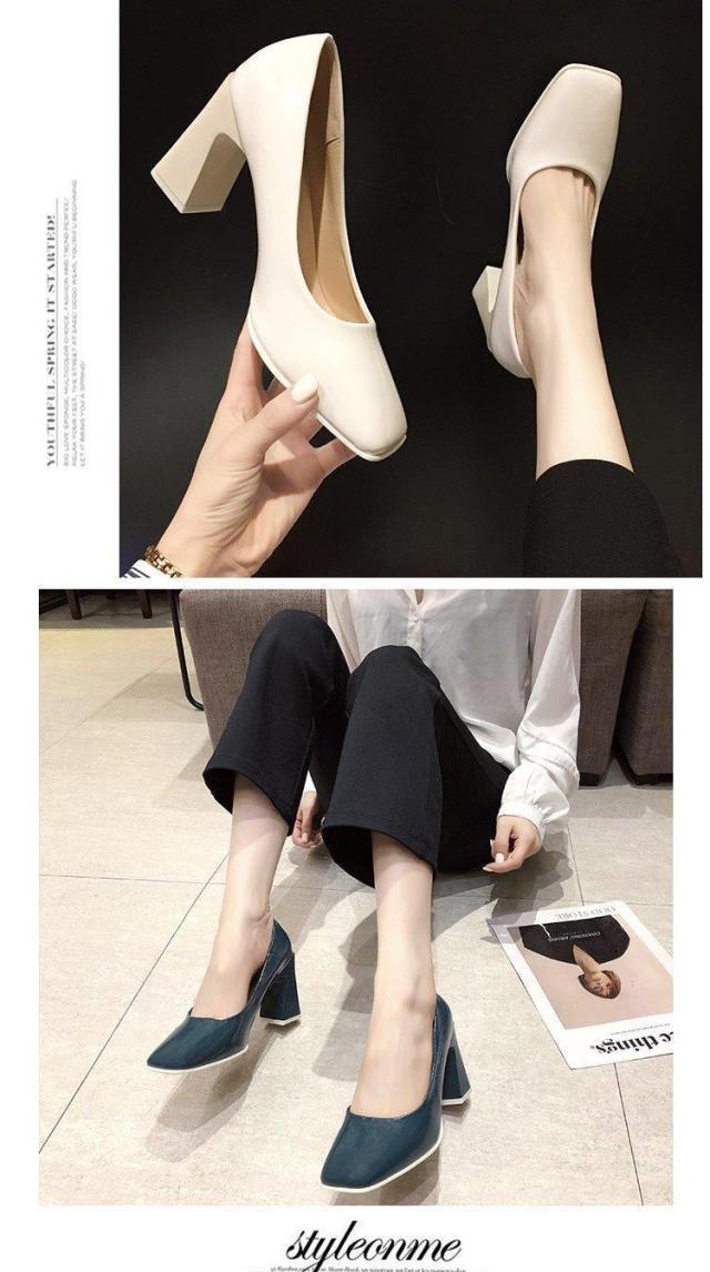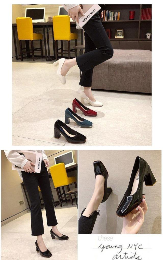 送料無料 パンプス レディース シューズ 靴 黒 ブラック チャンキーヒール スクエアトゥ 痛くない 柔らかい 太ヒール 8cmヒール 走れる 歩きやすい 結婚式 二次会 オフィス 通勤