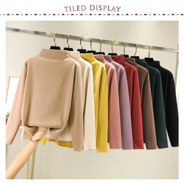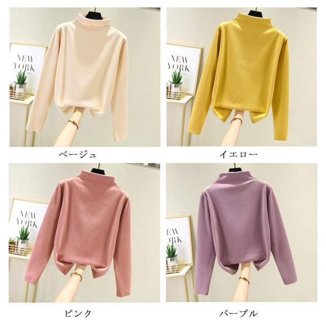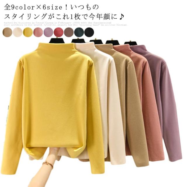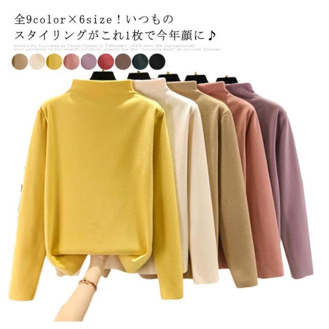 全9色×6サイズ!裏起毛 トップス tシャツ 無地tシャツ ハーフハイネック インナー 秋冬 厚手 防寒インナー 無地 ハイネックtシャツ 冬服 冬物 おしゃれ 可愛い