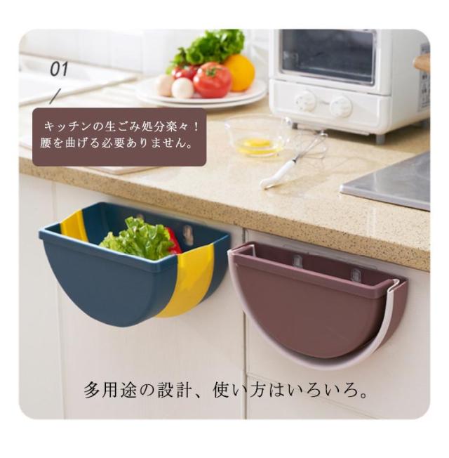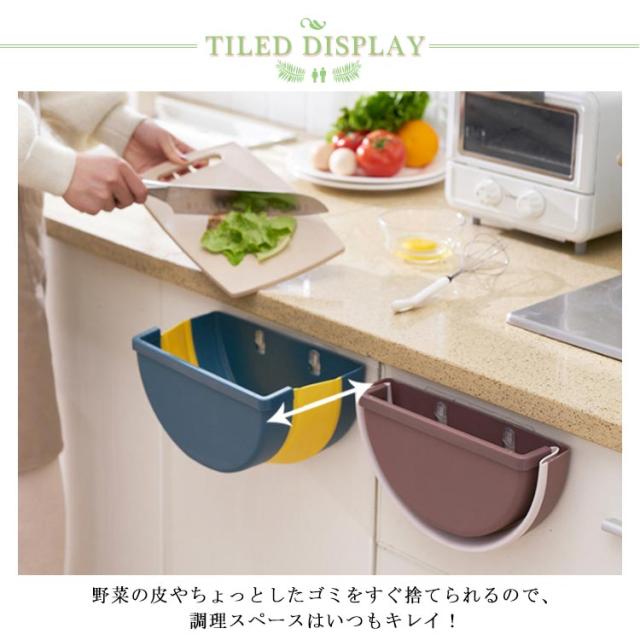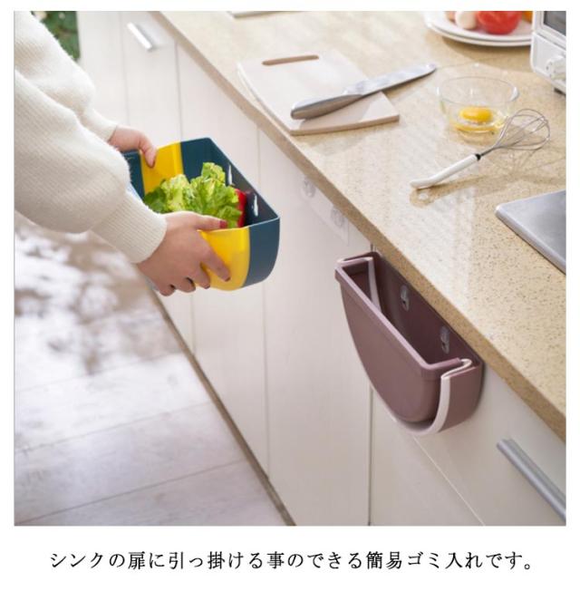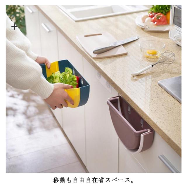 | シンクの扉に引っ掛ける事のできる簡易ゴミ入れです。 野菜の皮やちょっとしたゴミをすぐ捨てられるので、調理スペースはいつもキレイ! 使わない時は折り畳んですっきり!必要に応じて開閉できます。 | |
