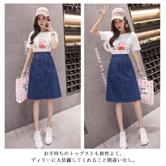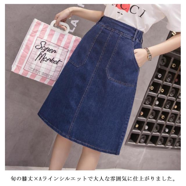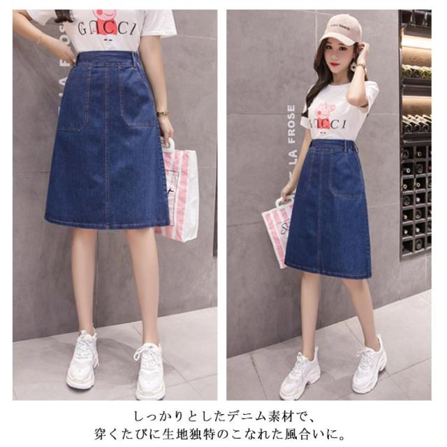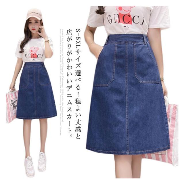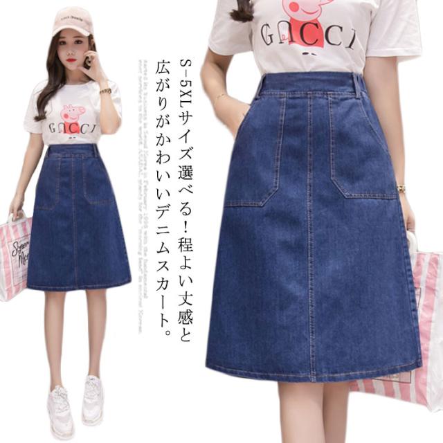 S-5XLサイズ!デニムスカート 夏 Aラインスカート デニム素材 スカート 膝丈 ハイウエスト aライン バックのみゴム 美脚 シンプル おしゃれ レディース