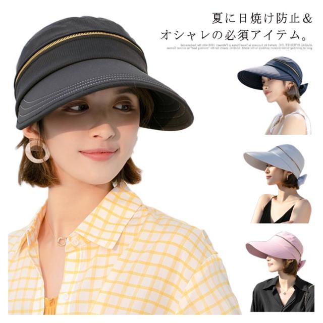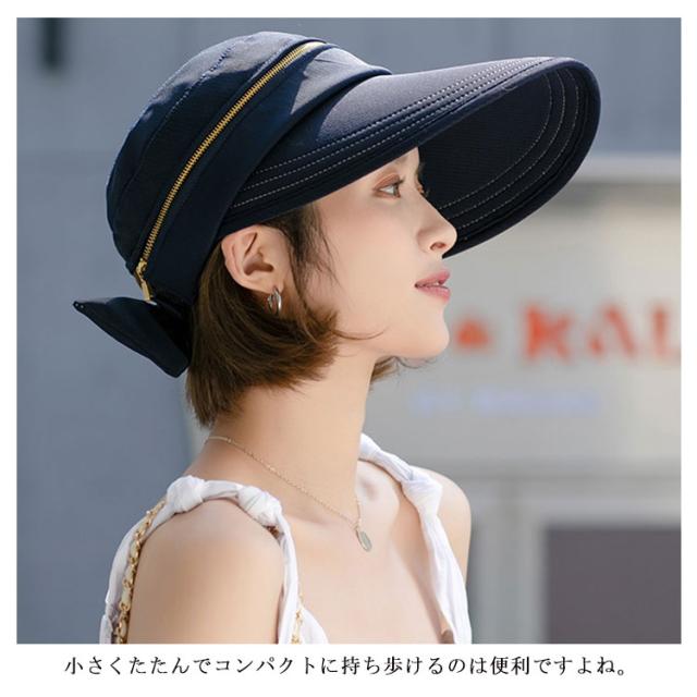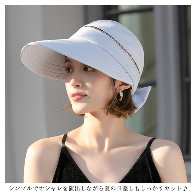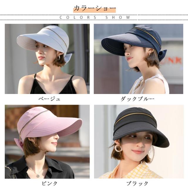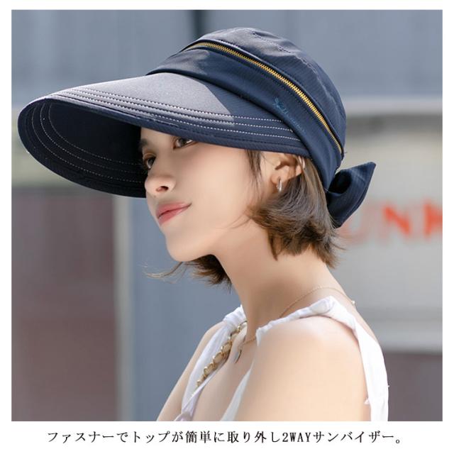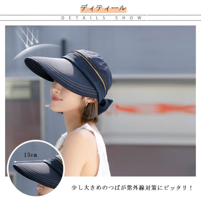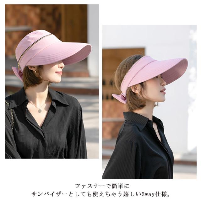 送料無料 UVカットサンバイザー レディース 帽子 つば広帽子 キャップ ファリハット 日よけ 紫外線対策 つば広ハット キャスケット 折りたたみ 2way 取り外し可能 アウトドア 日焼け防止 紫外線カット リボン付き 可愛い おしゃれ シンプル