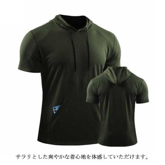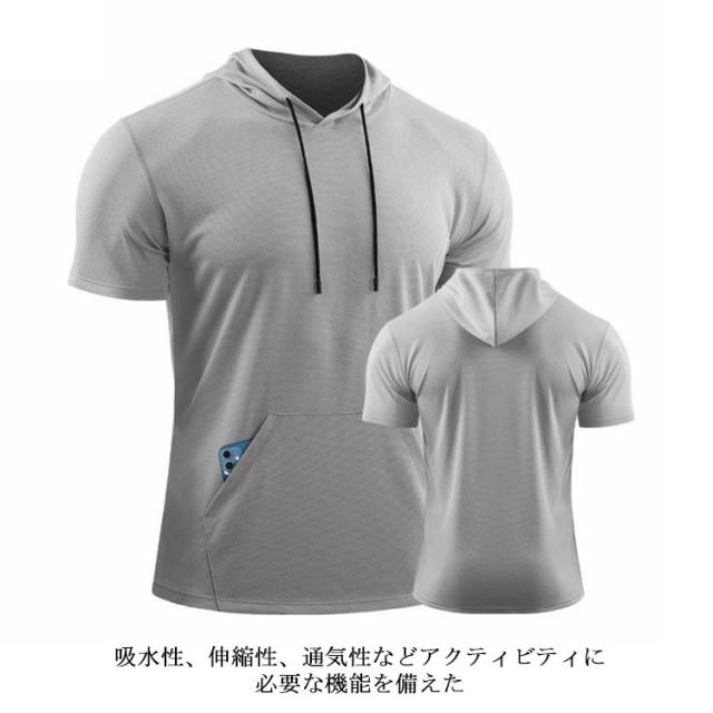 送料無料 パーカー 半袖パーカー 秒速吸水パーカー メンズ 半袖パーカー 吸汗速乾 UV対策 ウェア ランキング トレーニング スポーツ ウェア
