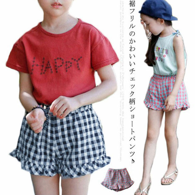 裾フリル ショートパンツ チェック柄 子供服 子ども服 女の子 春服 夏服 ハーフパンツ ボトムス 半ズボン カジュアル キッズ ジュニア 送料無料 ホットパンツ ガールズ おしゃれ かわいい 100cm 110cm 120cm 130cm 140cm