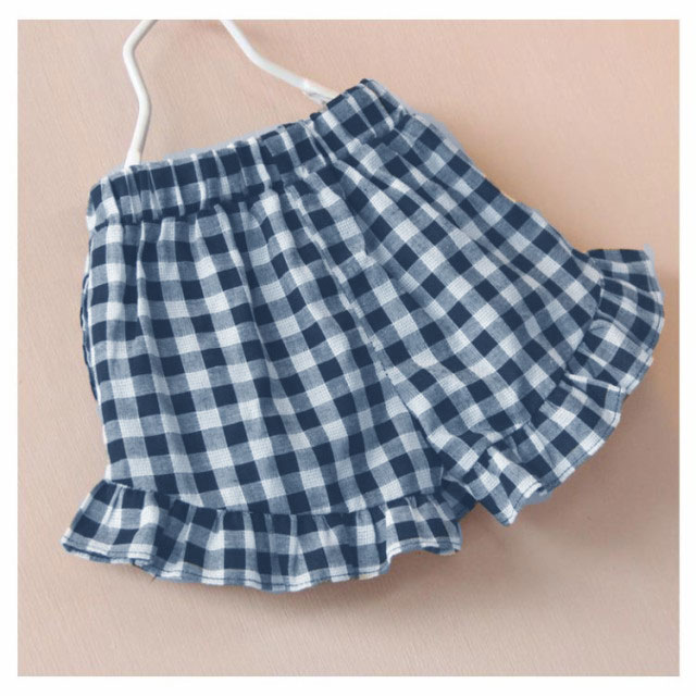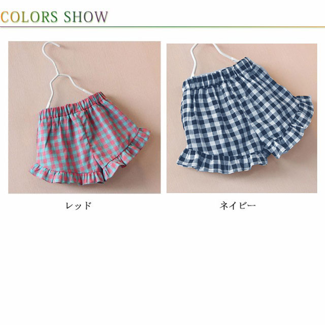 | 裾フリルのかわいいチェック柄ショートパンツ♪ ウエストゴムなのでらくちんです♪ 裾フリルデザインが女の子のかわいらしさを演出♪ 肌にやさしい綿素材で通気性と吸汗性抜群です♪ | |
