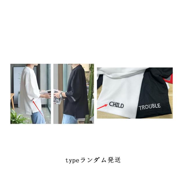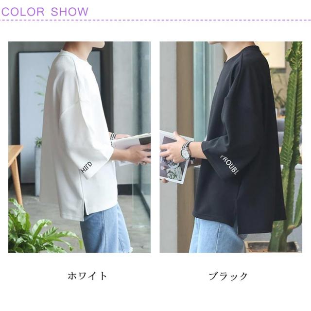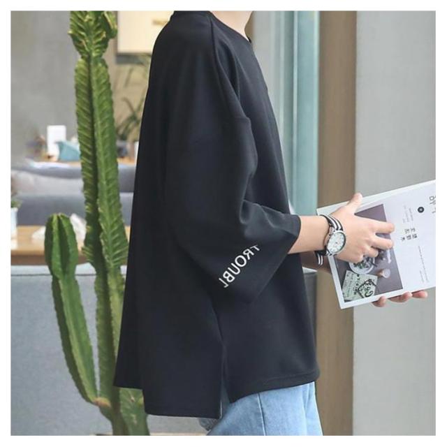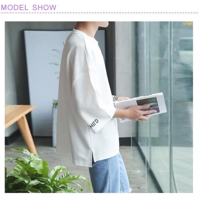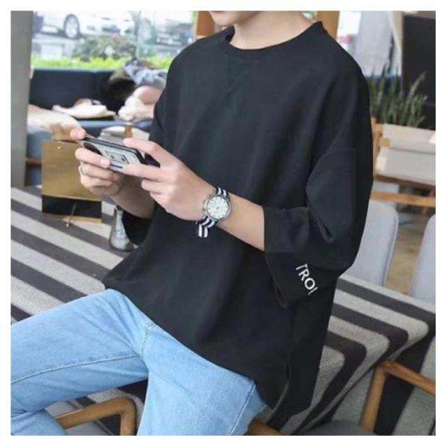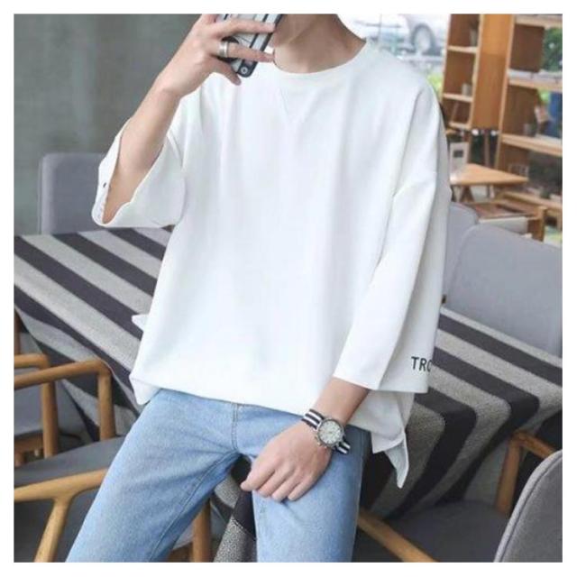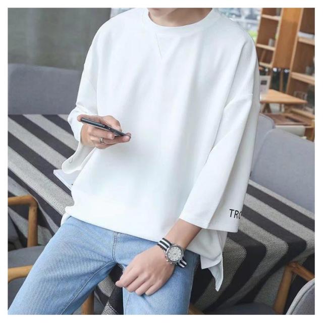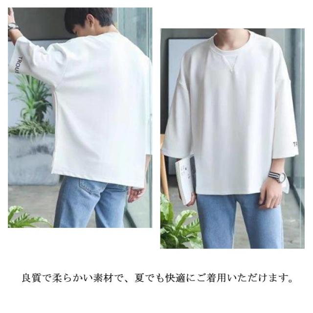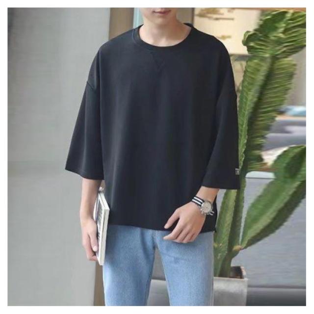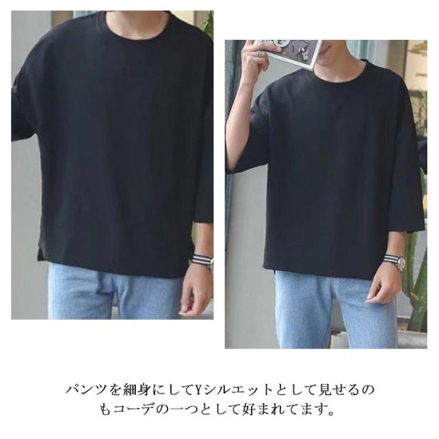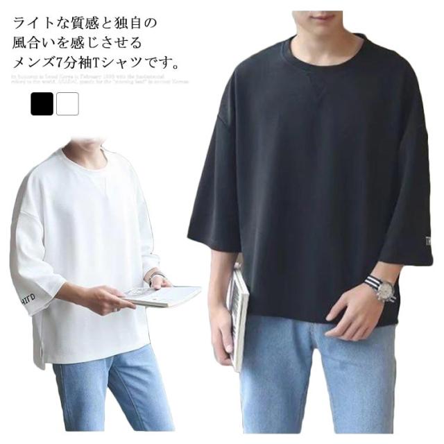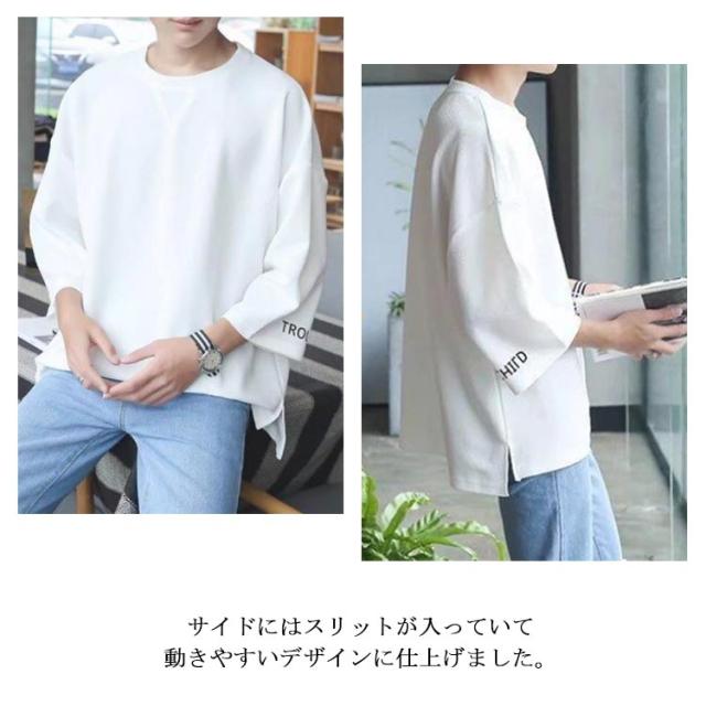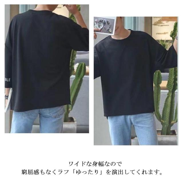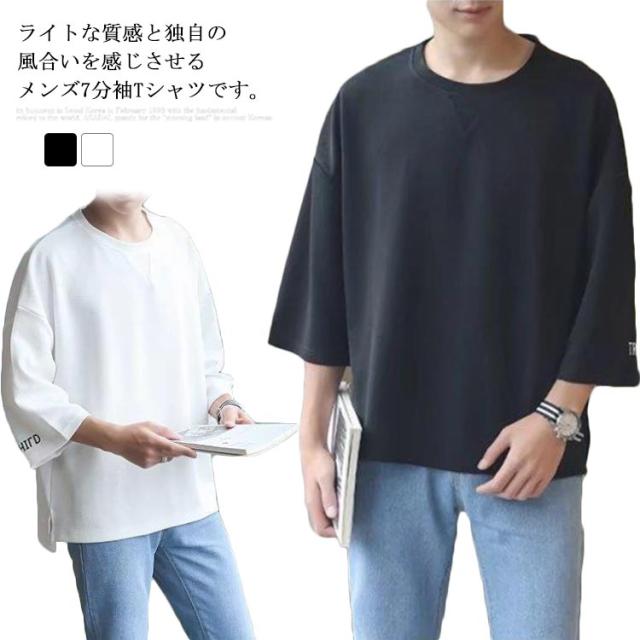 Tシャツ メンズ 七分袖 プルオーバー トップス インナー ビッグシルエット ゆったり カットソー クルーネック カジュアル 夏物 韓国風 メンズファッション シンプル 送料無料