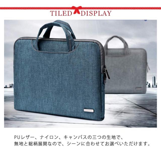 | 全3素材・13色!スタイリッシュな2wayノートパソコンケース。 PUレザー、ナイロン、キャンバスの三つの生地で、無地と総柄展開なので、シーンに合わせてお選べいただけます。 軽くて丈夫な生地に高撥水機能加工で、雨や雪による水の侵入を防ぎ、毎日の使いに最適。 内側は全面裏起毛のふわふわ仕様で、肉厚クッションでしっかり衝撃を吸収し、いざという時の衝撃から大切な機器を守ります。 持ち手付きで、持ち運び便利◎必要ない時は持ち手は収納可能なので、バッグinバッグの時も邪魔になりません。 前後仕切りポケットも整備し、ノートPCの他、書類、バッテリーやコード、携帯電話、マウス、筆記工具等小物を分けて収納できるからバッグ内もすっきり、さっと取り出したいものを出し入れできます。 シンプルでスマートなデザイン、ビジネスにもカジュアルにも、どんなシーンにも活躍できます。 | |