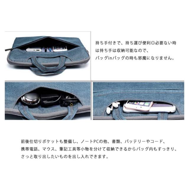 | サイズについての説明 | 11.6インチ 外寸約31*21.5*3cm 内寸約30.5*20*2.5cm 13.3インチ 外寸約35*25.5*3.5cm 内寸約33.5*23.5*3cm 15.6インチ 外寸約40*30*3.5cm 内寸約39*27.5*3cm ポーチサイズ:約16*12.5cm ※上記サイズは平置き実寸になります。 サイズ表の実寸法は商品によって多少の誤差がある場合がございます。 |
