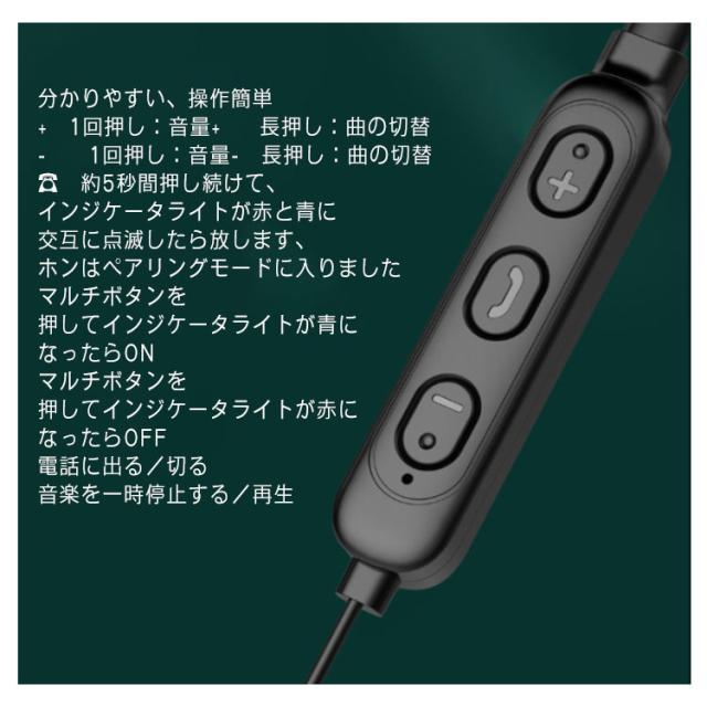 | 最新のBluetooth5.0ネックバンド型ワイヤレスイヤホン! 進化の省電力化技術により、ワイヤレスイヤホンとして一回フル充電で音楽は最大130時間の電池持ちを誇り♪ 一日の通勤、通学、スポーツ、登山等の際に安心してご使用いただけます。 | |