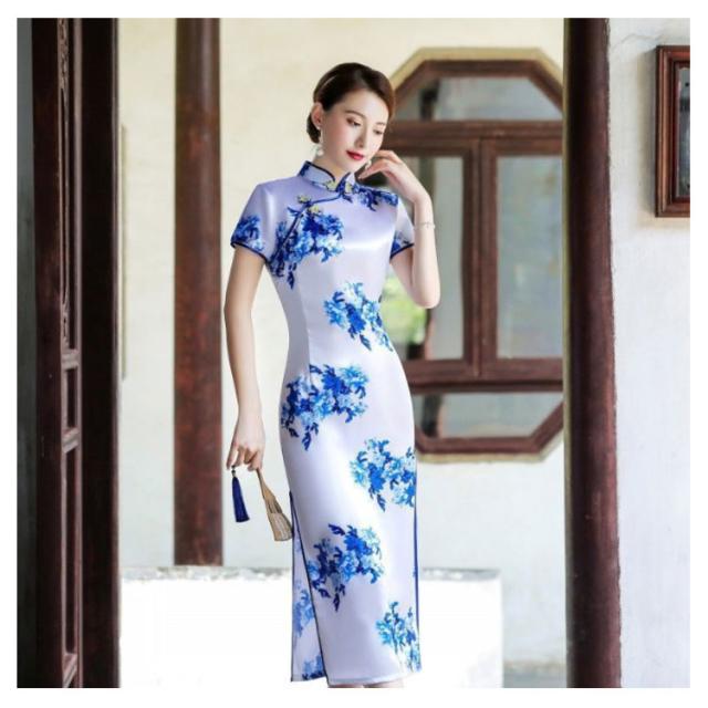 | 刺繍がキレイで、光沢があり、高級感のあるチャイナドレスです。 スリットが入っており、セクシー。生地がしっかりしており、丈夫で長持ちです! 裏地無しで柔軟である素材で、春夏に最適です。ロー・スリット、半袖にロング丈で、広い場面にご使用いただけます。 お洗濯は手洗いでお願いします。洗濯機使用時はネットを使用して、手洗いモードで優しく洗って下さい。 豊富なサイズで展開。 | |