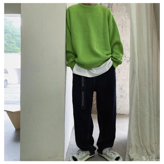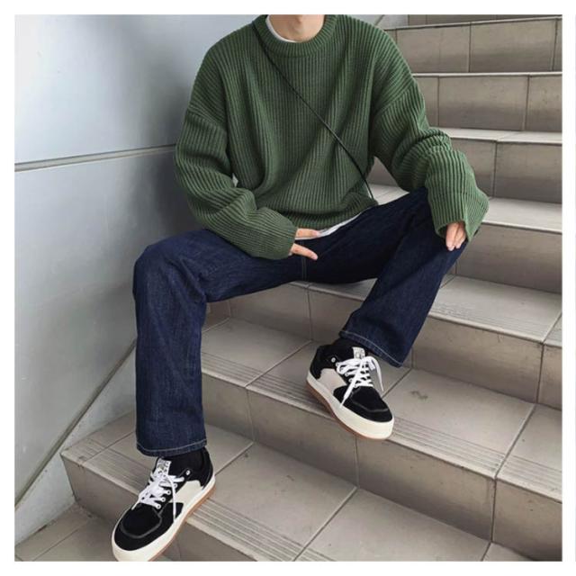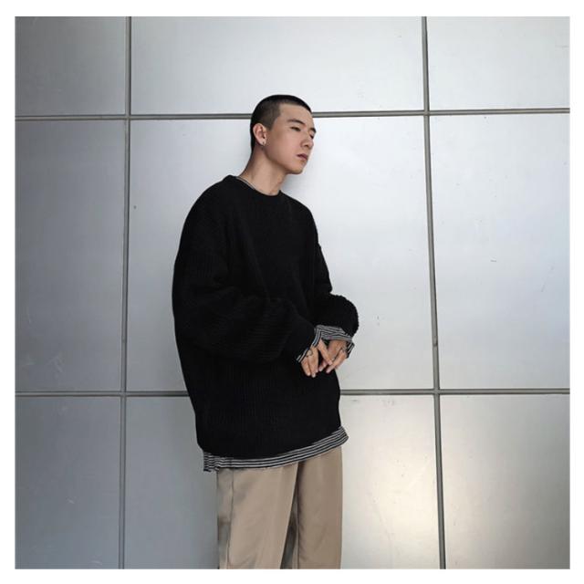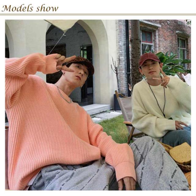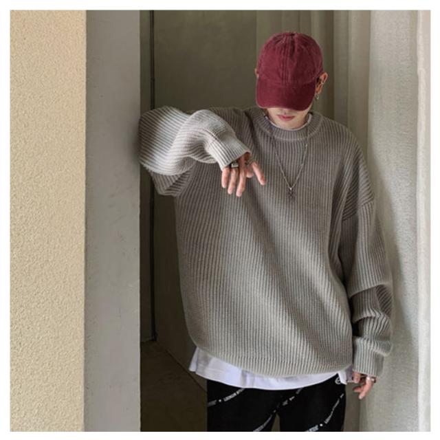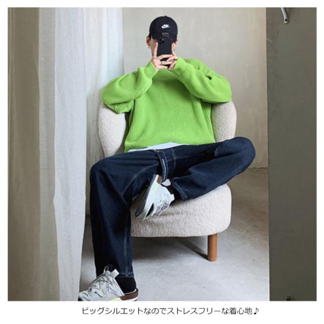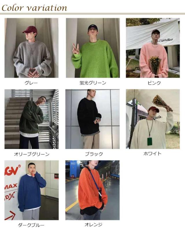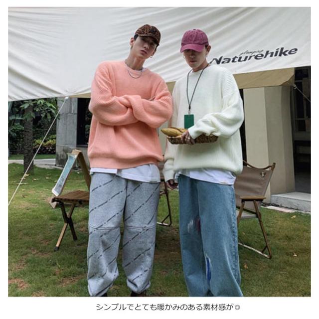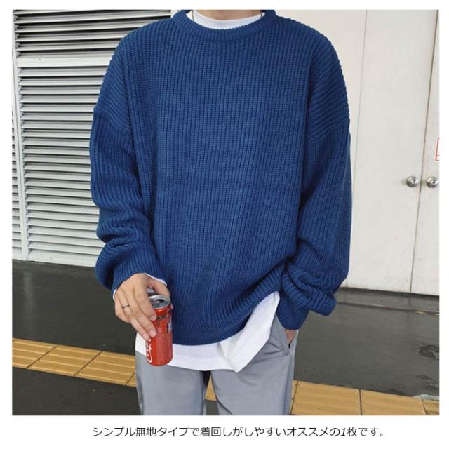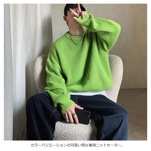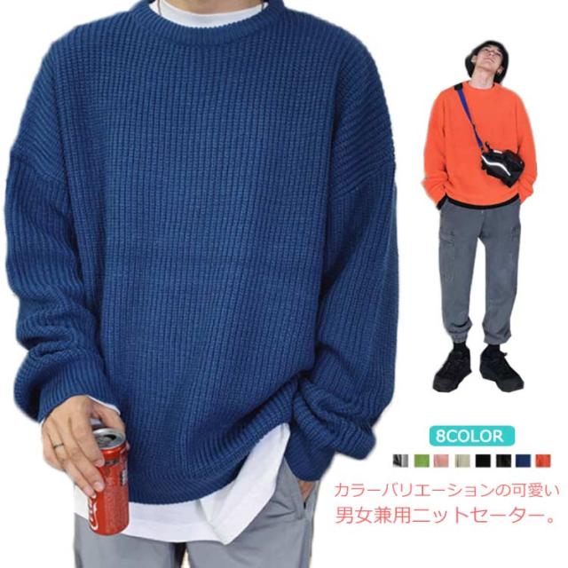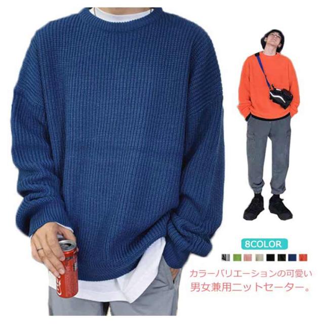 ニットセーター メンズ ニット セーター トップス レディース クルーネック 男女兼用 体型カバー 長袖 ゆったり 厚手 ビッグシルエット おしゃれ カジュアル 無地 通勤 通学 秋冬 韓国ファション